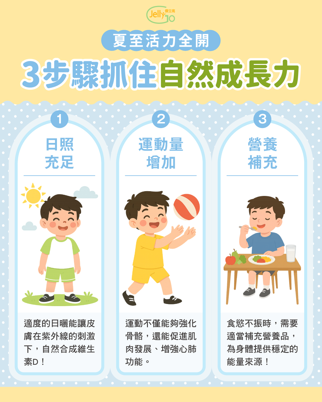 夏至:日照充足 成長衝刺 夏至:陽光最多的這一天, 也是長高最不該錯過的時候! 夏至不只是一年當中白天最長的日子, 對孩子來說,更是身體活力最旺、成長衝刺的最佳季節。 日照充足 → 維生 Continue reading ➝